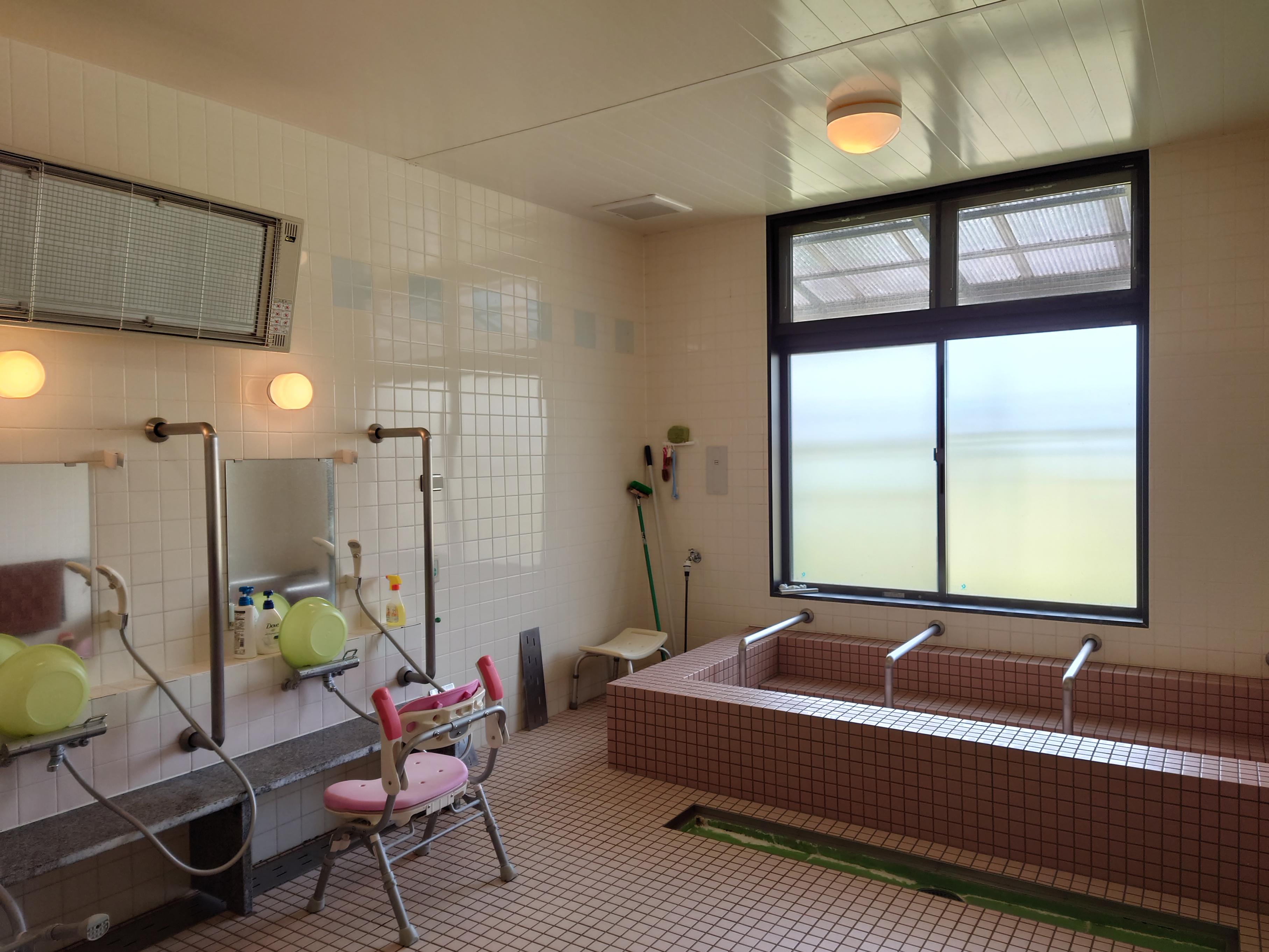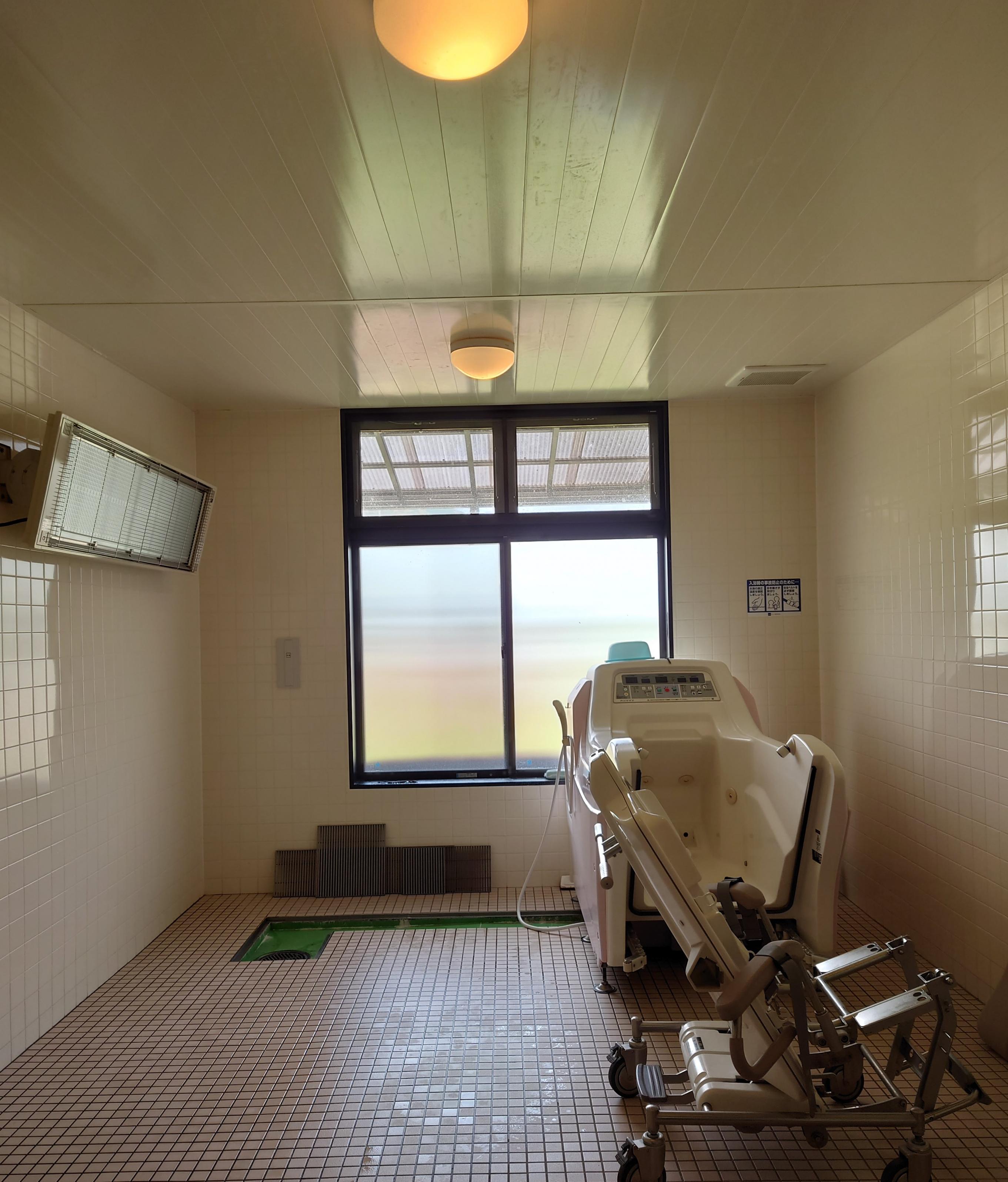 |   特別浴槽    一般浴槽  | 一般浴槽 安全・安心で入浴リハビリもできる独自設計の浴槽。 「ふつうの生活」を願う当事業所の思いを具体化したものです。 |