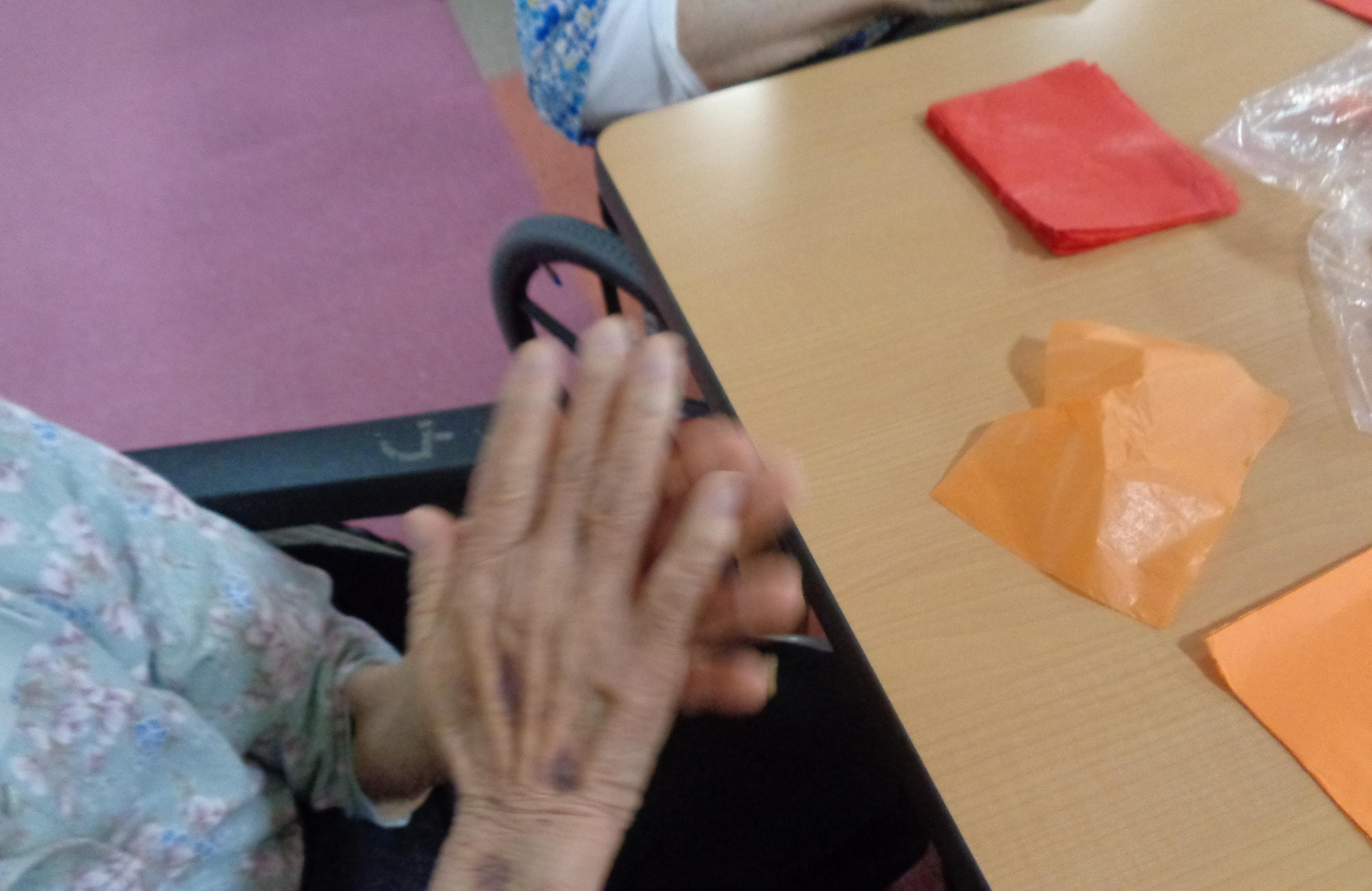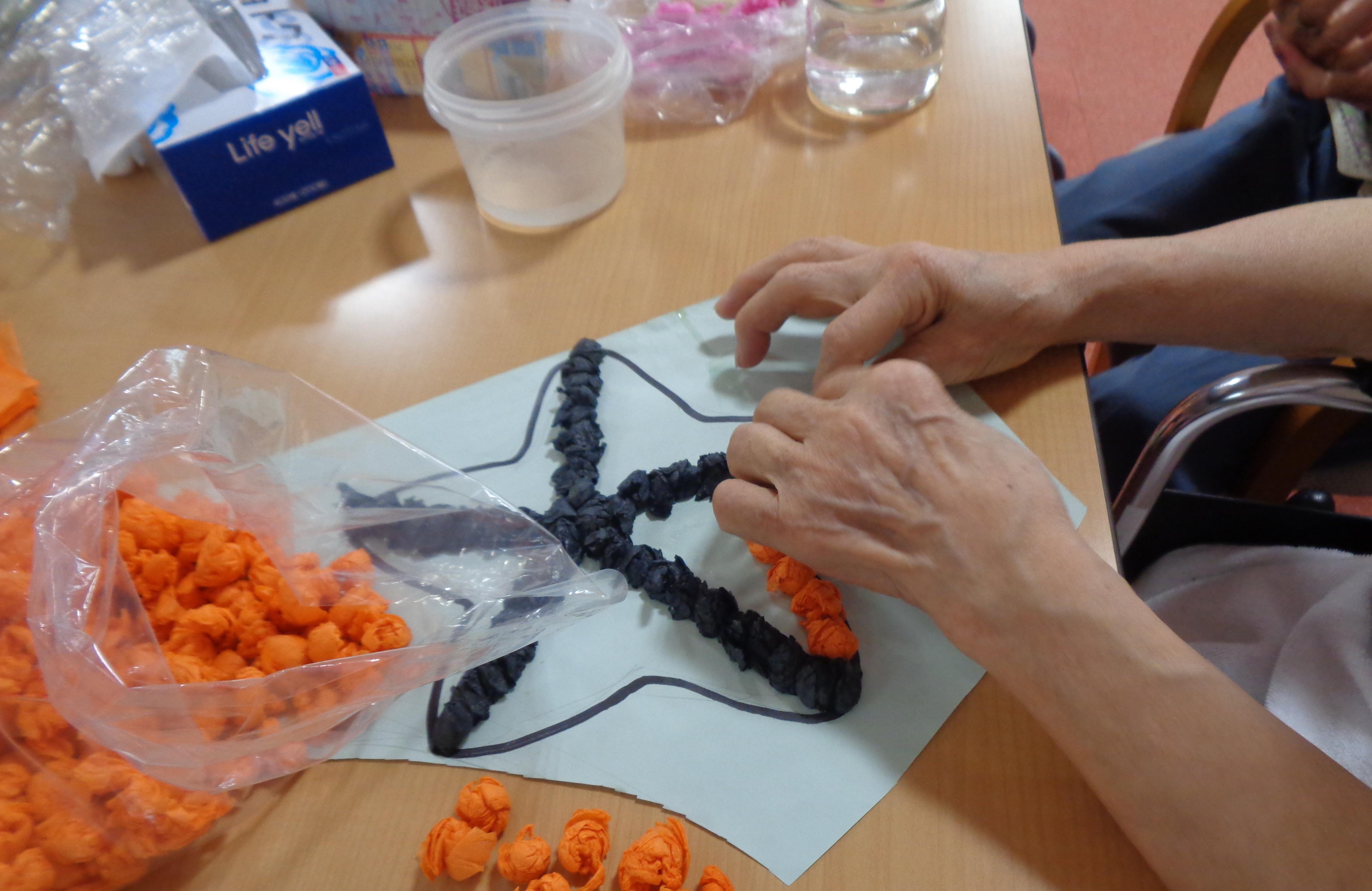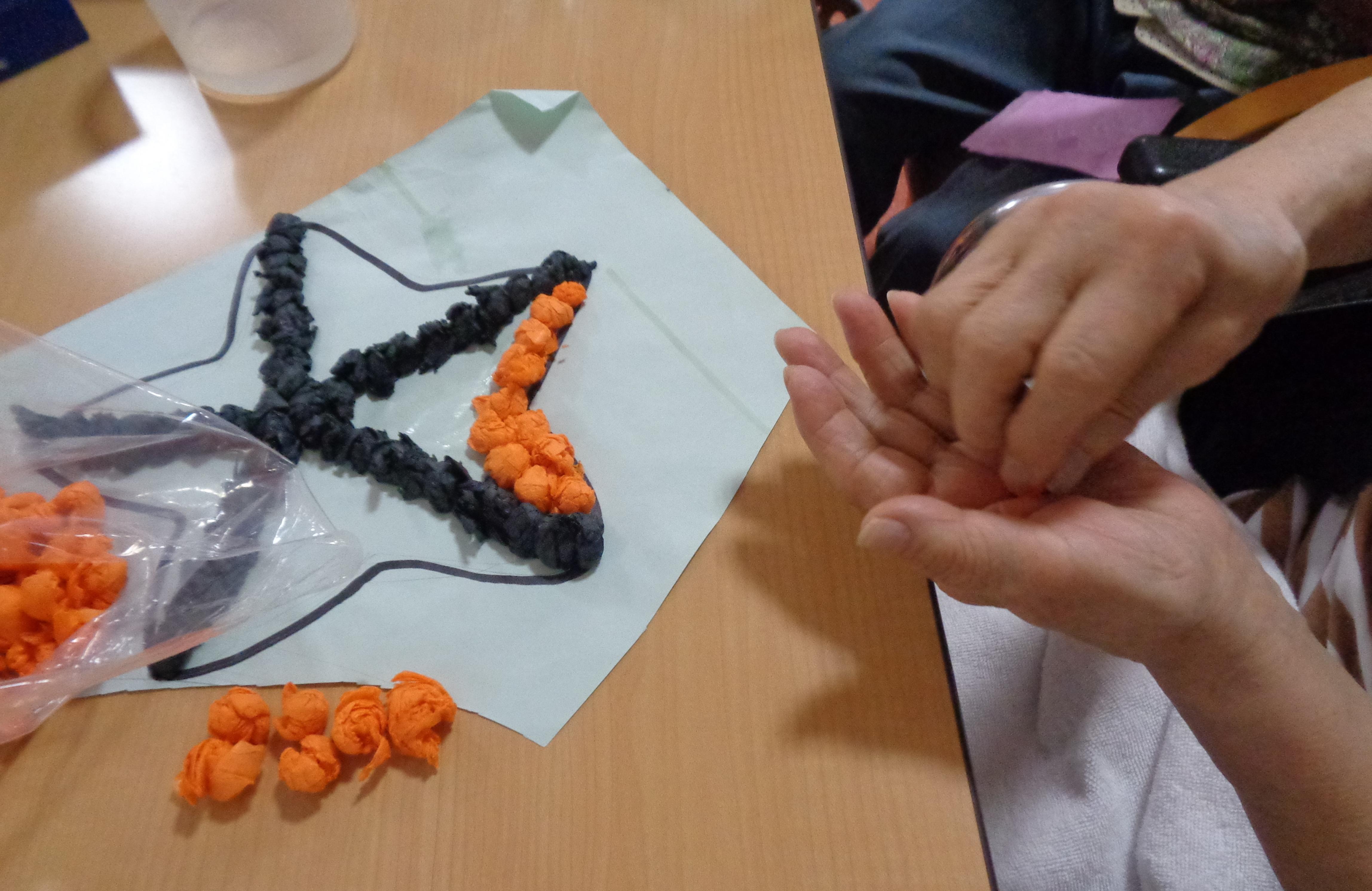 前回の工作の続きということで、再び利用者様に丸めて、貼っての作業をして頂きました! この作業を始めるとひとり、ふたりと利用者様が参加し、わいわい楽しそうに過ごされています~ クジラは完成しましたが、公開するのは一つの絵になるまでのお楽しみという事でもうしばらくお待ちいただければと思います… ![]() ![]() ![]() 事務