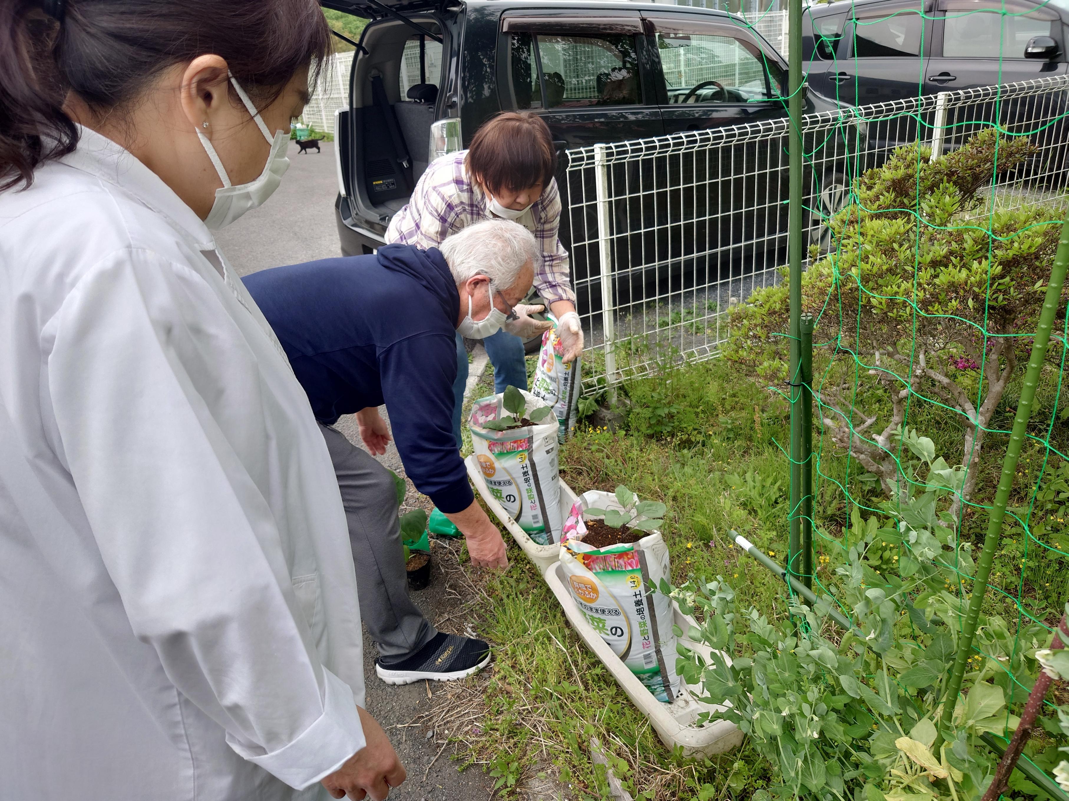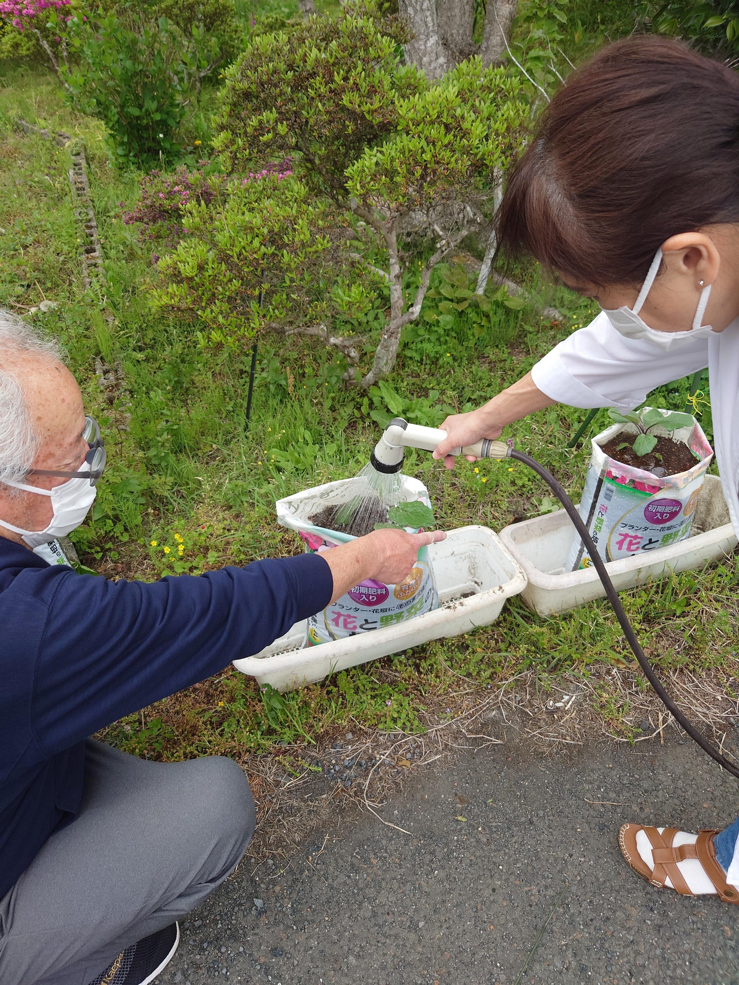 先日、センター長と栄養士さんと衛生さんで1日かけて野菜とブルーベリーの木を 植えました^^ お家でも野菜を育てていて物知りな衛生さんのご指導の下行いましたよ~~ 午前中はマー坊ナスと普通のナスときゅうりの苗を植えました! ![]() マー坊ナス ナス ![]() ![]() きゅうり ![]() 水やりもして… ![]() ![]() 活動①はこれで完了! 次はブルーベリーの木を植えたことについて載せたいと思います^^ お楽しみに~ 事務 |