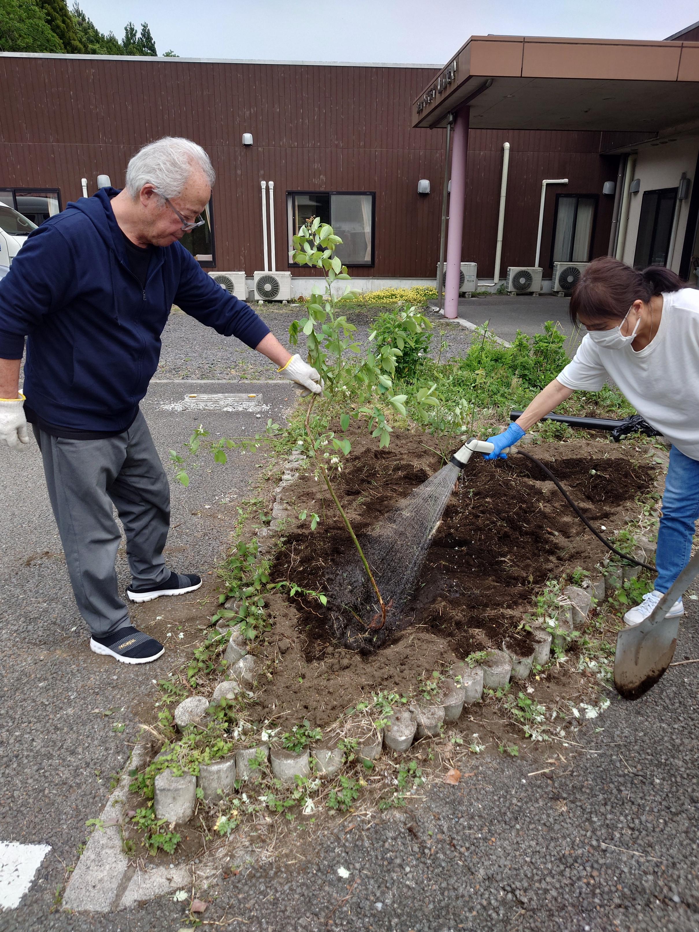 前回の園芸活動の続きです まず、花壇の草むしりから行いました~ ![]() ![]() ![]() 草むしりが終わったら、いよいよブルーベリーの木を植えていきます^^ 水をたくさんあげて… ![]() ![]() 草が生えにくいようにマルチを張って… ![]() ![]() 完成!! 目標はこのブルーベリーの木から実を収穫して、お誕生日会のケーキに使うことなので すくすくと育ってほしいです(切実に) ![]() なかなか大変な作業でしたが、みんなで和気あいあいとした楽しい活動 となりました^^ センター長、衛生さん、栄養士さん、ほぼ1日かかった園芸活動お疲れ様でした! 事務 |