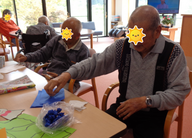 今回は久しぶりのレクリエーションです~ 何を作っているかは大体予想つくとは思いますが、最後まで見て頂けたら 嬉しいです^^ ![]() 今回は男性グループが参加者でした~ わいわいと楽しそうに参加されていました^^ ![]() 皆さん器用にお花紙をくるくる丸めているようですね~ ![]() 丸めたお花紙がどうなるかはお楽しみに! ![]() 事務 |