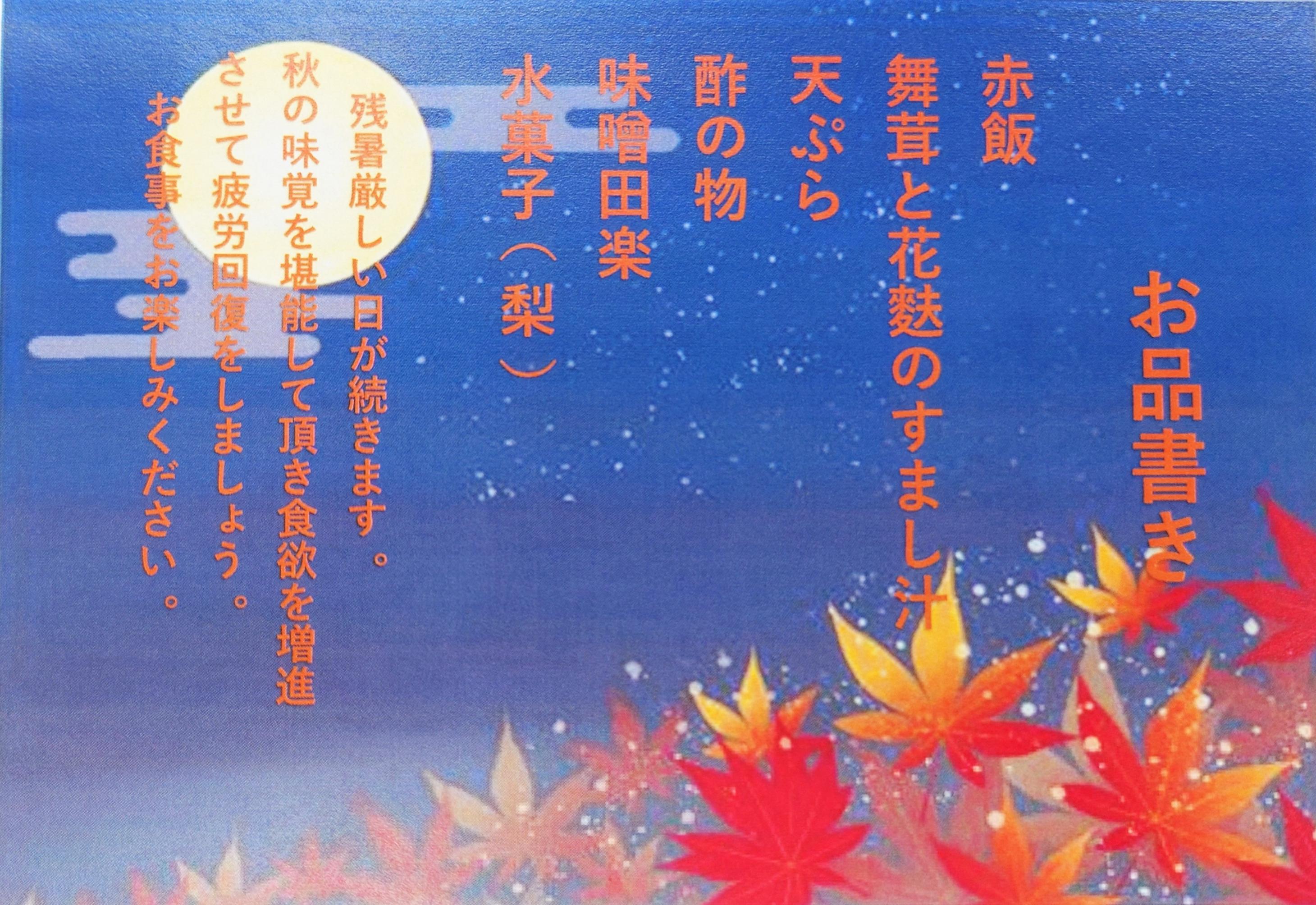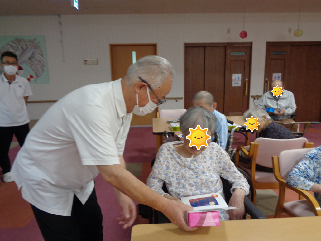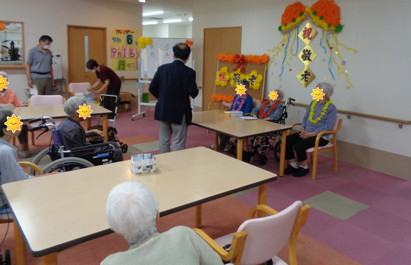 投稿が遅くなってしまいましたが、しんせいでも敬老会を行いましたよ^^ 今年は長寿祝いの方が3名いらっしゃいました! ![]() 社長からご挨拶と長寿祝いの方々に賞状と記念品贈呈中~ ![]() 長寿祝いの方以外の皆さんへセンター長と副センター長からメッセージカードとプレゼント贈呈をさせていただきました! ![]() ![]() 嬉しすぎてノリノリでポーズ^^ ![]() そして、お待ちかねの昼食は行事食でした~ ![]() お品書き ![]() 今年はゲームや出し物をすることが出来ませんでしたが、皆さんに喜んでいただけて良かったです^^ 皆さまのご長寿を祝し、いつまでもご壮健であられますようスタッフ一同、心より お祈りいたします 事務 |