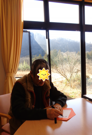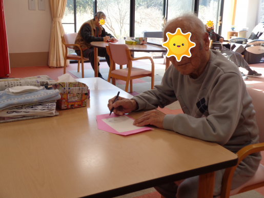 順番が逆になってしましたが、今回は絵馬を書いていただいている 様子を紹介します~ 真剣な表情で取り組まれています… ![]() ![]() カメラ目線をして下さいました^^ ![]() ![]() 一生懸命、願いを込めて書かれていました^^ みなさんの願い事が叶いますように… 事務 |