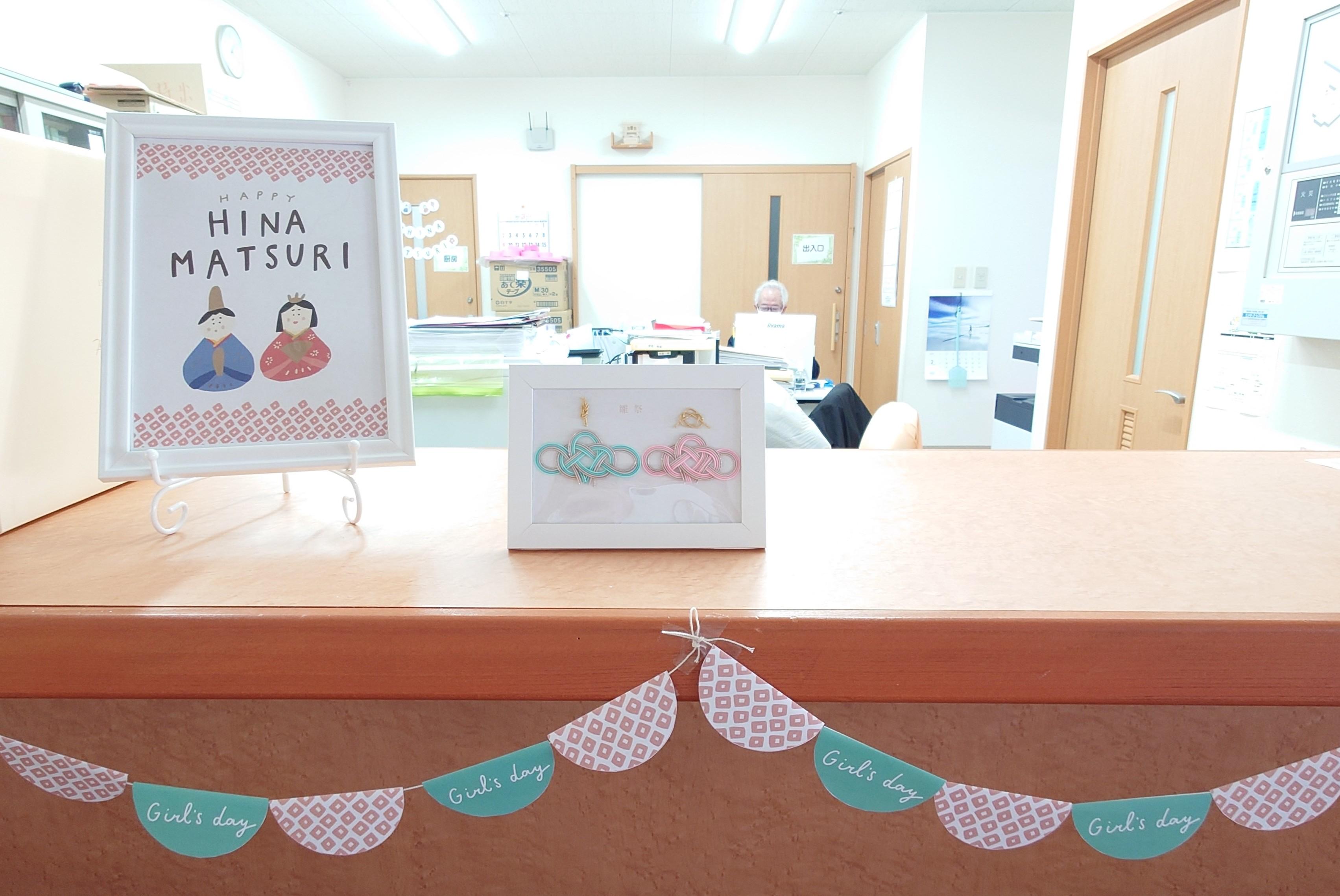 3月はひなまつりがあるので、事務所のカウンターの飾りつけも変えてみました~ ![]() ポスターもひなまつり仕様にしてみました~ ![]() 全快の節分に続いて、ひな人形も水引で作ってみました ![]() 事務 |
