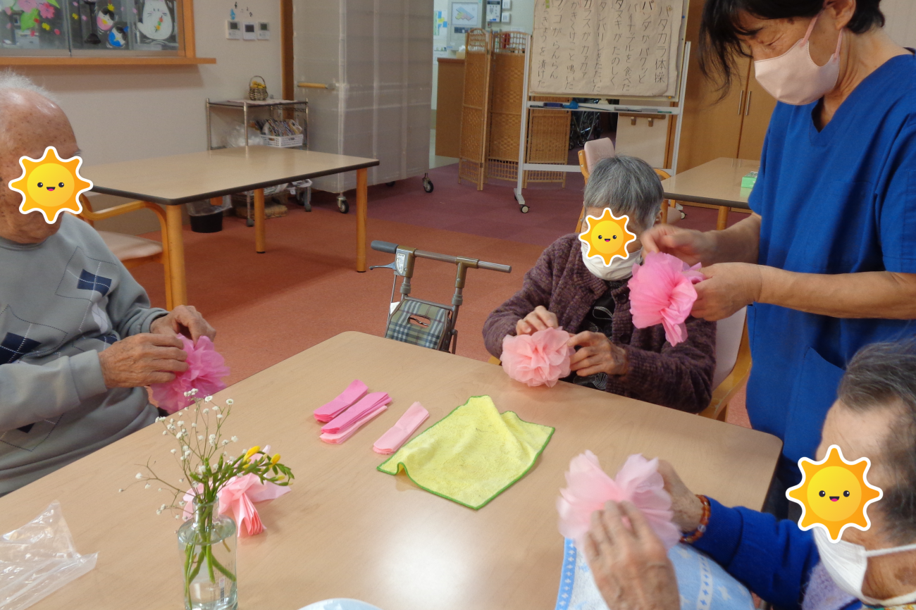 久しぶりに制作を行ってもらいました! おはながみでたくさんのお花を作っていただきましたが、みなさんとても器用なので 作るスピードが速かったです~ ![]() 後ろに少し見えてるのが今回制作の壁画です^^ 春なので桜を作っているようです~ ![]() ![]() 事務 |