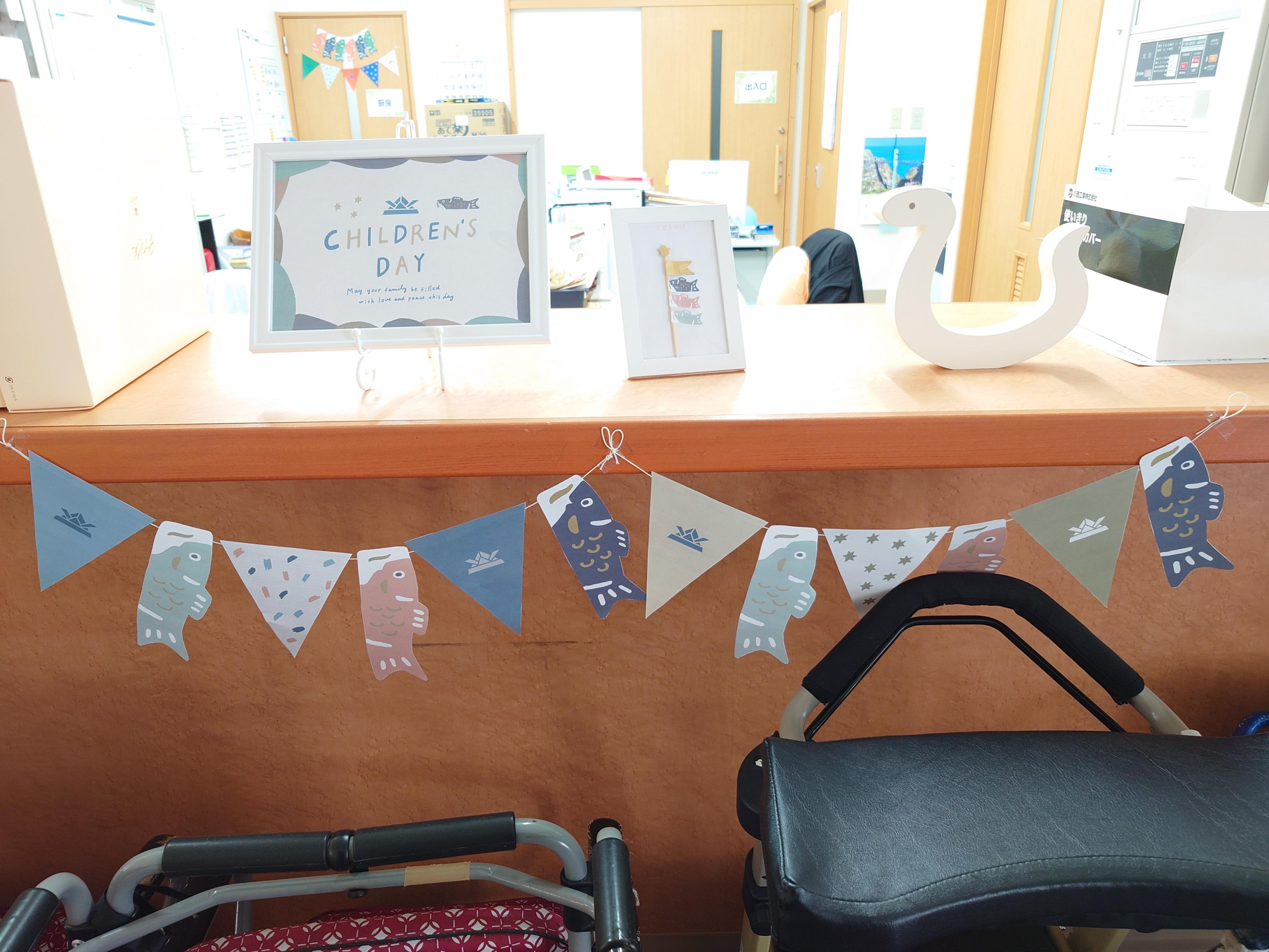 5月に入りましたので、事務所カウンターと厨房のドアの飾りを変えてみました~ こどもの日があるので鯉のぼりの飾りつけです^^ 事務所カウンターは落ち着いた色合いにしました ![]() ![]() 小さい鯉のぼりを作ってみました ![]() 厨房のドアは濃いめな色合いにしました ![]() 事務 |
