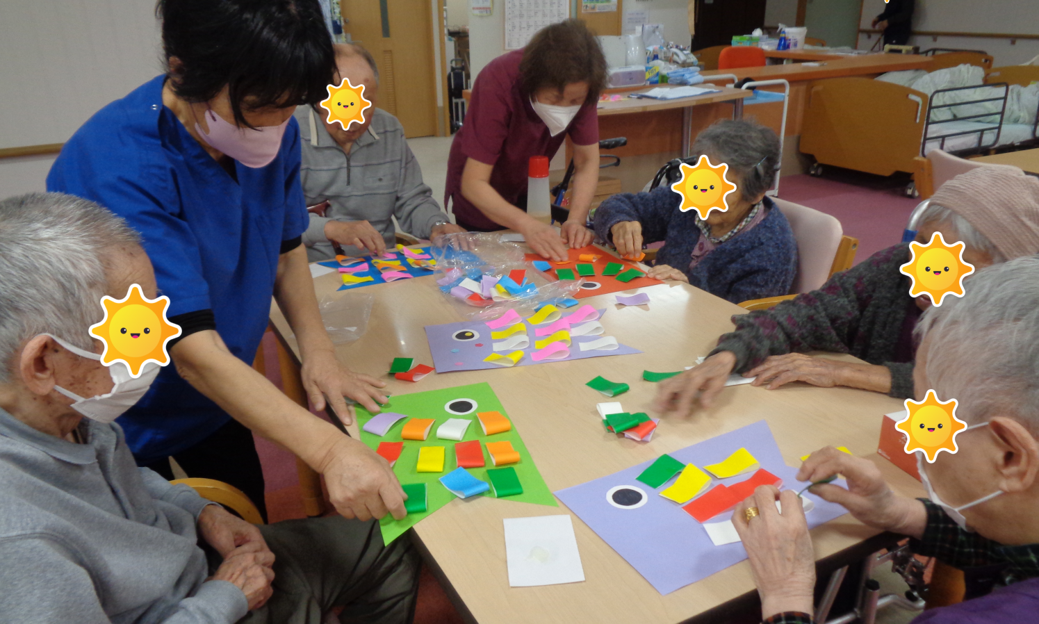 5月は鯉のぼりを作りました~ スタッフが補助に入りながら、うろこの部分は好きな色を選んでいただき、 鯉のぼりの台紙にのりで貼ってもらいました^^ ![]() ![]() 完成がこちら! 色とりどりでとても素敵な作品が出来上がりました~ ![]() こどもの日という事で兜を作って童心にかえってみました^^ とても楽しそうでした~ ![]() 事務 |