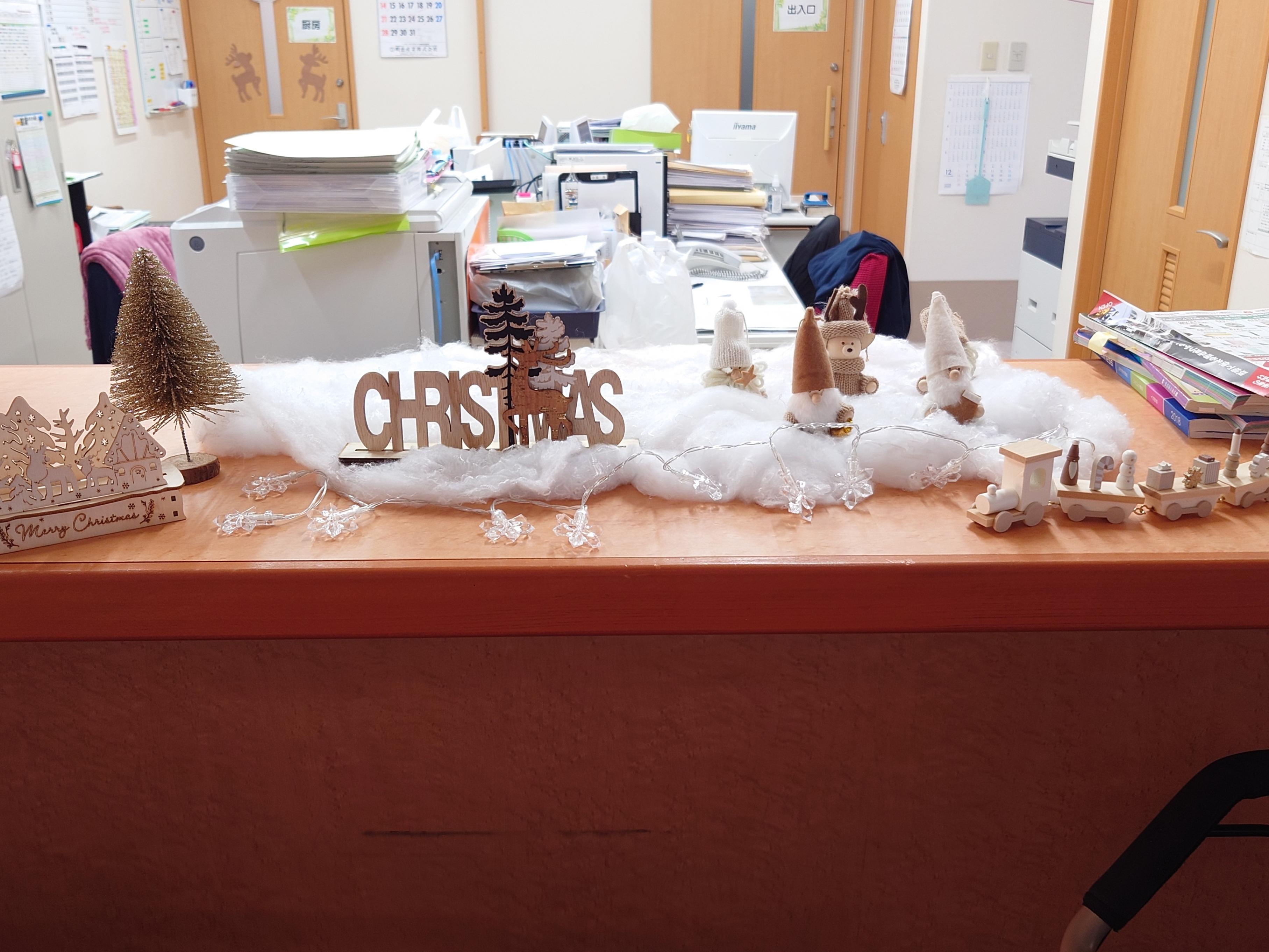 厨房のドアと事務所カウンター、玄関の飾りつけをクリスマス仕様にしました! 厨房のドアにおはながみで作ったリースと色画用紙を切り抜いたトナカイを 飾りました~ ![]() 事務所カウンター ![]() 次回は玄関の様子をお伝えします^^ 事務 |